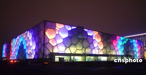 組圖:“水立方”姹紫嫣紅喜迎圣火到京(2)