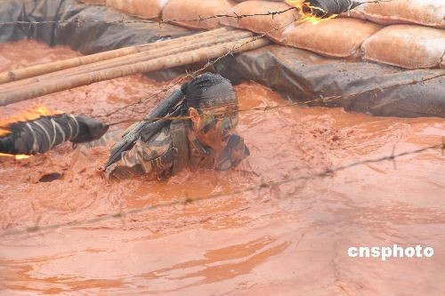 4月3日,美國(guó)海軍陸戰(zhàn)隊(duì)司令詹姆斯·康威上將一行在中國(guó)海軍南海艦隊(duì)野外兩棲登陸訓(xùn)練場(chǎng),觀摩中國(guó)海軍陸戰(zhàn)隊(duì)某旅的軍事演練。擔(dān)負(fù)演練任務(wù)的海軍陸戰(zhàn)隊(duì)某旅是中國(guó)海軍第一支兩棲作戰(zhàn)部隊(duì)。圖為女陸戰(zhàn)隊(duì)員通過泥潭。中新社發(fā) 李唐 攝