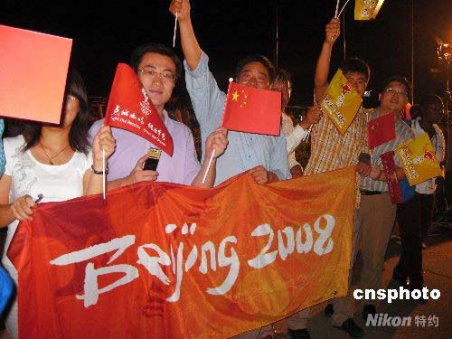 組圖:海外同胞支持北京奧運 護衛(wèi)圣火傳遞 (5)