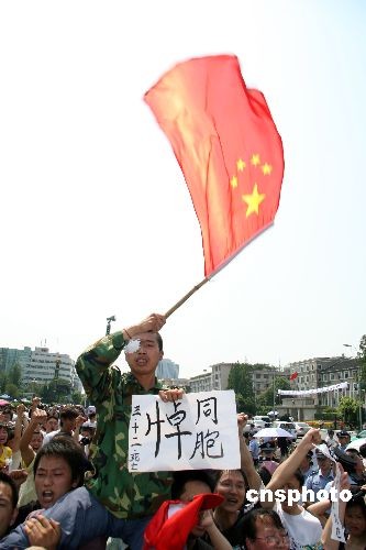 5月19日14時28分,成都天府廣場,數(shù)以萬計的民眾自發(fā)聚集在一起默哀,為在四川汶川地震中遇難的同胞哀悼、祈禱,之后,萬人高喊“雄起”!