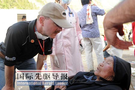 此次北川之行,孫柏安和他的同事們帶來了包括消毒水、針頭在內(nèi)的醫(yī)療用品。在趕往災(zāi)區(qū)的途中因?yàn)榈缆凡粫常恍┪镔Y被留在其他車上,他們不得不多次折返搬運(yùn)。在北川縣城,哪個(gè)地方需要消毒水,他們就往哪個(gè)地方送;哪個(gè)地方需要抬傷員,他們就跟著抬;哪個(gè)地方護(hù)士不夠,他們中的凱爾西•加德納女士就去充當(dāng)臨時(shí)護(hù)士——這是她的老本行。