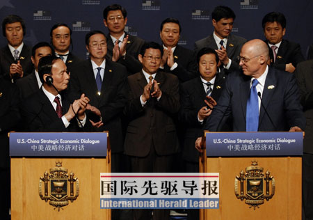 當王岐山帶領10多位部長和副部長級官員登上主席臺時,全場響起熱烈掌聲,鼓掌者包括來自美國總統特別代表、財政部長保爾森以及其他七八位美國部長級官員。保爾森在致辭中特別提到,這是他和他的內閣同事們首次與中國政府新“經濟團隊”集體會面,他期待著美中通過戰略經濟對話這個平臺共同解決面臨的問題。