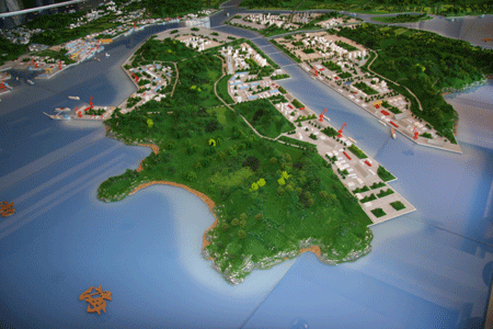 大連長興島臨港工業區黨群工作部董部長指引著長興島的藍圖沙盤,信心滿懷地說,長興島聚集著世界的目光,成為中外客商競相投資的熱土。