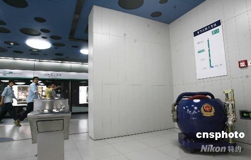 圖:北京地鐵奧運支線站內設防暴裝置