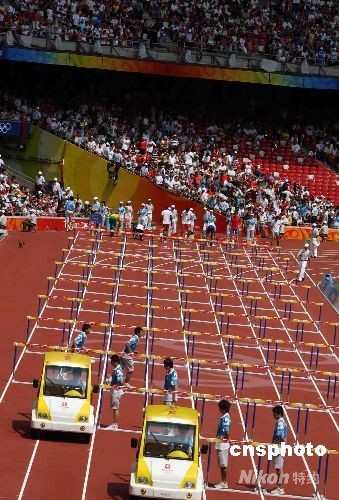 北京奧運會田徑男子110米欄第一輪比賽,8月19日上午在北京奧林匹克公園內的國家體育場舉行。中新社發 任晨鳴 攝