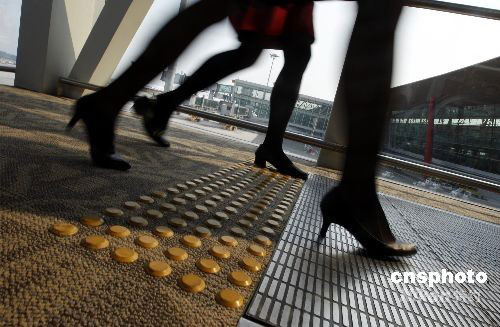 9月3日,北京首都機場涉及15個大項1400處無障礙設施的改造已全部完成,這座國際機場完全可以滿足殘奧會和殘疾旅客的使用需求。所有樓梯、直梯前粘貼了6200塊盲道提示貼,在殘疾旅客經過的樓梯鋪設了5000米黃色防滑提示條。在殘奧會期間,首都機場還為需求輪椅的旅客設置了輪椅存放區,旅客可以隨時免費領取使用輪椅。此外,首都機場還專門將2號航站樓01號遠機位大棚用于殘奧團隊保障的專屬區域,由此,旅客減少了換乘直梯的次數,時間上節省40%,提高了保障效率。在9條殘奧專用安檢通道上,每個安檢現場都設有封閉的殘疾旅客私密檢查間,內設殘疾人坐椅、衣物筐、腳墊、物品整理臺等,并且采用同性工作人員安檢方式,充分尊重隱私。中新社發 杜洋 攝