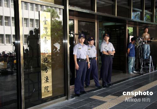 圖為法警、記者一早就守候在臺(tái)北地方法院正門。中新社發(fā) 陳立宇 攝