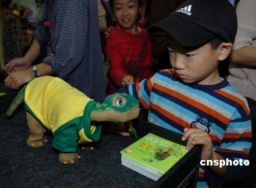 圖為能與主人進(jìn)行情感交流的電子恐龍。中新社發(fā) 朱沿華 攝