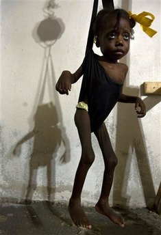 今年,由于風(fēng)暴襲擊,海地60%的糧食收成被橫掃一空。在某些地區(qū),無國界醫(yī)生組織發(fā)現(xiàn),營養(yǎng)不良的比例高達(dá)5%,其中,兒童更是受害最大的人群。據(jù)美聯(lián)社報道,無國界醫(yī)生組織比利時分部的負(fù)責(zé)人馬克斯.科斯奇表示,除了這26名孩子,還有65個嚴(yán)重營養(yǎng)不良的兒童被送到臨時搭建的山區(qū)帳篷診所及太子港等地區(qū)的醫(yī)院接受治療。“有一個孩子在治療中死去了”。這些孩子的癥狀包括腸胃萎縮,因營養(yǎng)不良導(dǎo)致色素減少、發(fā)色變淡,有些甚至出現(xiàn)了浮腫,這是因蛋白質(zhì)缺乏引起的功能紊亂癥狀。