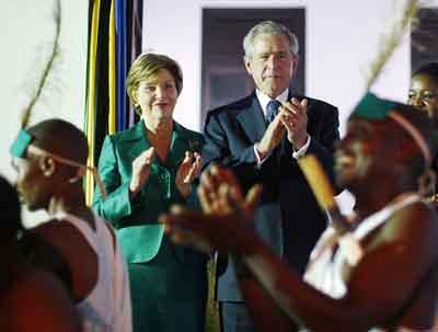 坦桑尼亞是布什這次非洲5國之行的第二站。路透社駐當?shù)赜浾甙屠?#183;穆迪說,盡管布什在美國國內(nèi)支持率低迷,但在這個東非國家享受到了久違的贊美。