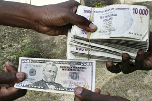 津巴布韋發(fā)行世界上面額最大鈔票面值2.5億(圖)