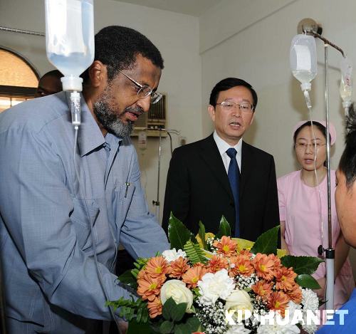 祖貝爾·哈桑當天在中國駐蘇丹大使李成文的陪同下,到醫院探望了正在那里接受治療的4名獲救中國工人。他首先向獲救工人表示慰問,并希望他們早日康復。他還對另外5名中國工人在綁架事件中不幸遇害表示哀悼。