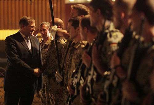 近日,德國國防部長弗朗茨·約瑟夫·容為參加歐盟領導的打擊海盜行動的德國官兵送行,此次行動德國派出了卡爾斯魯赫(Karlsruhe)號護衛艦參與。