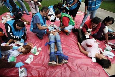 根據地震演習組織的數字統計,超過一千萬加州居民參加了今天上午舉行的美國有史以來最大地震演習,以紀念舊金山大地震二十周年。參與者在辦公室、餐館、公共交通工具、學校以及家中演練了在大地震來臨時,如何保護自己及援救他人。