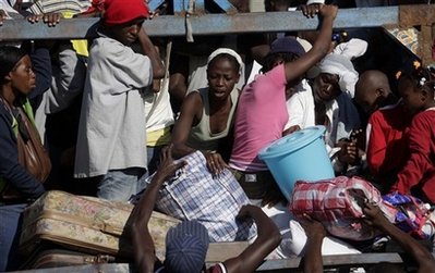 中新網(wǎng)1月19日電 據(jù)外電19日?qǐng)?bào)道,數(shù)以千記的海地災(zāi)民爭(zhēng)相擠上開往太子港郊區(qū)的公共汽車,希望在那里能夠更容易的找到食物和水。