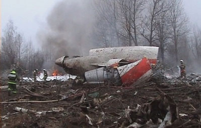 中新網(wǎng)4月11日電 綜合報道 莫斯科時間10日10時50分許,一架從波蘭華沙飛往俄羅斯的老舊的圖-154專機(jī)在俄斯摩棱斯克市墜毀,造成機(jī)上波蘭總統(tǒng)卡欽斯基和夫人以及軍方高官、政治家和宗教領(lǐng)袖共96人喪生。