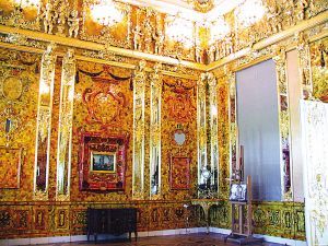 1716年,普魯士國王為了與俄國結(jié)盟,就將這件稀世珍品贈送給了俄彼得大帝。1717年,琥珀宮被運到圣彼得堡。俄國十月革命后,珍藏在凱瑟琳宮的“琥珀宮”成了前蘇聯(lián)最著名的旅游景點之一。