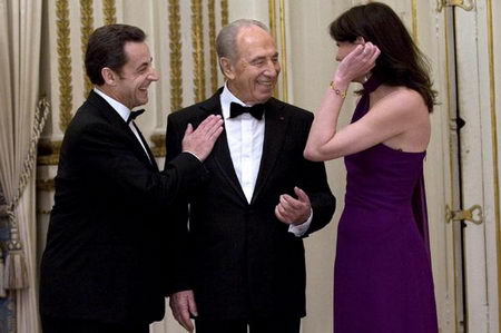 佩雷斯正在對法國進行為期五天的國事訪問,他是薩科齊當選總統并和布呂尼結婚后接待的首位外國元首。佩雷斯在愛麗舍宮首次見到了布呂尼。國宴活動還邀請了2百位貴賓。