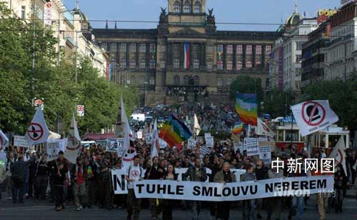 捷克千人示威 反對(duì)美國在境內(nèi)建反導(dǎo)彈基地(圖)