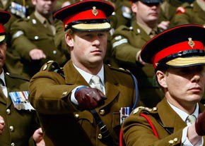 中新網6月19日電 綜合報道,英國王室第三繼承人哈里王子18日和他的戰友一起參加紀念在阿富汗陣亡英士兵的紀念儀式,身著軍裝的王子和眾士兵一起閱兵,盡顯“王子兵”的颯爽英姿。