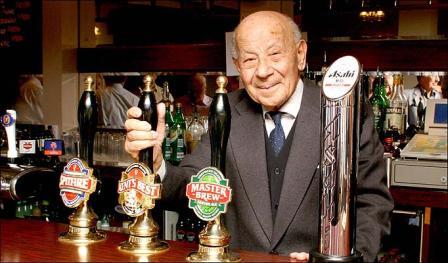 中新網9月1日電 英國老人克里斯托現年100歲,仍在肯特郡一家酒吧調酒,是英國最年長的酒保。