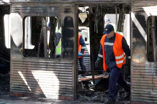 30名消防隊員最后將大火撲滅,但是其中一列車上的6節(jié)車廂被毀,另一列車上有3節(jié)車廂被毀。