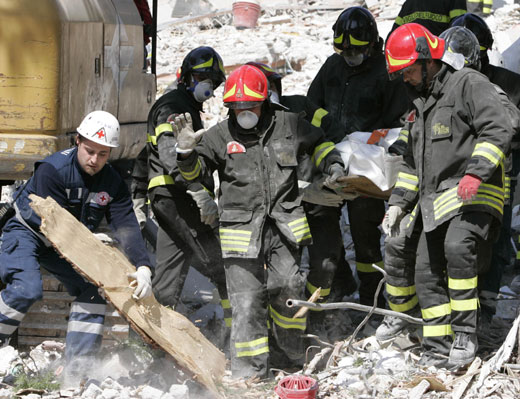 另據意大利國家民防管理局官員透露,人口6.8萬的拉奎拉市約有三分之二的建筑在地震中倒塌,包括一座大學學生宿舍、數座教堂和鐘樓。