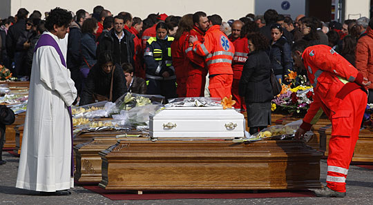 中新網4月10日電 綜合外電報道,當地時間上午11點左右(北京時間17點左右),意大利為近300名地震的罹難者舉行國葬。教宗本篤十六世為葬禮捎去信息,希望幸存者能夠將“堅強繼續”。