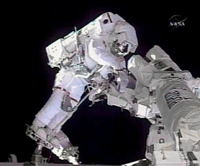 兩名宇航員,包括一名女宇航員,順利完成六個小時的太空漫步,出艙進行維修工作,他們主要是清潔及維修太空站右邊的太陽能系統,替換多個零件。
