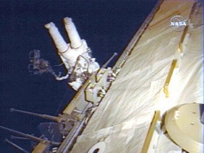 “發(fā)現(xiàn)號”的2名航天員在北京時間20日凌晨1時20分步出國際空間站,展開預(yù)計6個半小時的太空行走。
