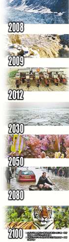 雖然確定這些潛在的巨變的日期并不容易,但是以下時(shí)間表有助于我們從宏觀角度看地球的未來。這個(gè)時(shí)間表,是根據(jù)近期多項(xiàng)研究和政府間氣候變化委員會報(bào)告所制訂。