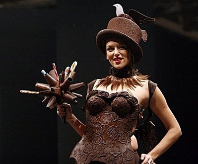 除了展示巧克力做成的模型外,沙龍期間,每天下午5點都將舉辦巧克力時裝秀,模特們身穿用巧克力做成的服裝亮相T臺。