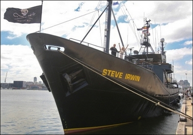 海洋守護(hù)者協(xié)會成員搭乘的其中一艘護(hù)鯨船被重新命名為"史蒂夫-歐文",以紀(jì)念澳大利亞已故"鱷魚獵手"。史蒂夫-歐文曾為澳大利亞最受歡迎的野生動物節(jié)目主持人和環(huán)保主義者。歐文去年九月參與海底紀(jì)錄片《最致命的海洋生物》系列節(jié)目拍攝時,由于太靠近黃貂魚,不幸被一條黃貂魚的毒刺刺中身亡。