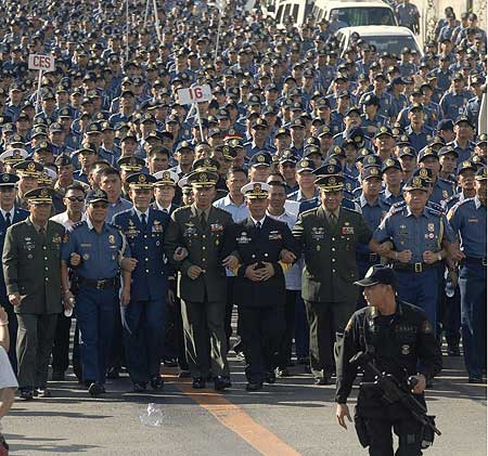 菲律賓數萬人示威游行 軍警手挽手力挺總統(圖)