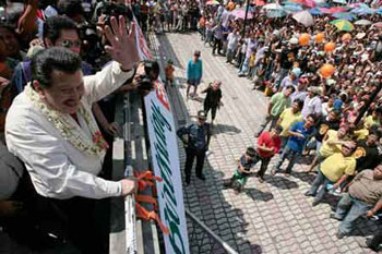 埃斯特拉達(dá)原本承諾不再過(guò)問(wèn)政事,但依然堅(jiān)持攻擊身陷貪污丑聞的阿羅約,要求其立即辭職。他還決定在下次菲律賓大選時(shí)加入反對(duì)黨陣營(yíng),埃斯特拉達(dá)13日在接受記者采訪時(shí)說(shuō),“我將考慮,F(xiàn)在我沒(méi)有競(jìng)選的打算,但是如果人民要求的話,我可以拒絕嗎?”