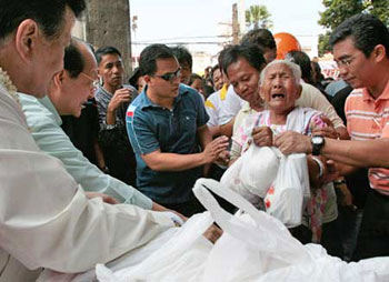 最近一段時(shí)間,國(guó)際糧價(jià)大漲,菲律賓恰好又是世界最大的稻米進(jìn)口國(guó),大米價(jià)格17日平均報(bào)價(jià)為每噸1046美元,較3月份上漲47%,遠(yuǎn)遠(yuǎn)超出普通百姓的承受能力。