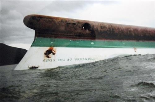 “群星王子”號渡輪的注冊可載乘客數為1992人,它在遭到巨浪襲擊后傾斜,最終在錫布延島沿海海域沉沒。“風神”臺風已在菲律賓其它各地造成598人喪生或失蹤。