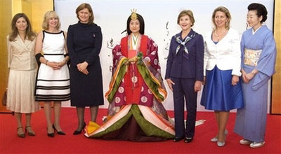 中新網(wǎng)7月8日電 7日北海道洞爺湖G8峰會開幕當天,日本首相福田康夫的夫人貴代子以日本茶款待了各國首腦夫人。她們還觀看了日本傳統(tǒng)和服“十二單”的穿著方式,感受了日本文化的魅力。