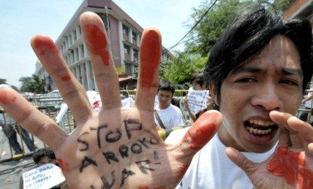 中新網9月9日電 據星島環球網報道,8日菲律賓民眾在總統府馬拉卡南宮外爆發反總統集會,要求總統阿羅約停止戰爭,同時示威者還反對穆斯林反叛者在南菲律賓的活動和涉嫌干預馬尼拉的美國。