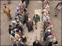 成百上千的選民不顧分裂組織抵制選舉的呼吁,大清早就在以穆斯林居民為主的克什米爾山谷地區排起了長隊準備投票。