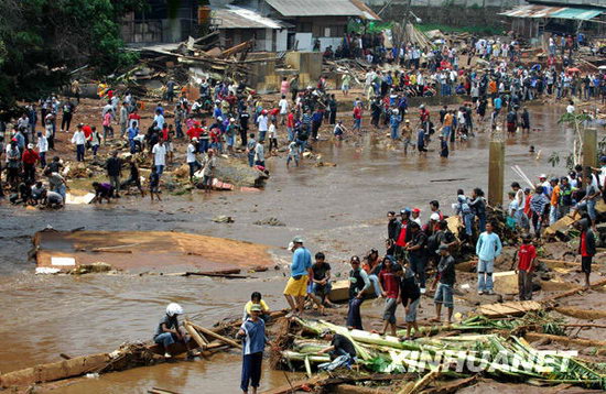當地時間27日凌晨2時許,在距雅加達以南約50公里的文登縣發生湖壩決堤事故。古農湖大壩突然崩塌,洪水隨即沖入居民區,水深最高達2.5米,許多居民在睡夢中被大水卷走。(新華網雅加達3月29日電/記者趙金川)