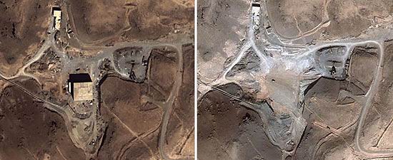 周三美國科學和國際安全研究所這個獨立機構公布了襲擊前的衛星圖片,圖片顯示了敘利亞北部的一個設施,他們認為那就是空襲的目標。圖片顯示了一座大型工業建筑和一個在幼發拉底河上的泵站。該研究所表示,圖片中的建筑和朝鮮寧邊核設施的建筑十分相像,建筑外墻的長度大致相同。