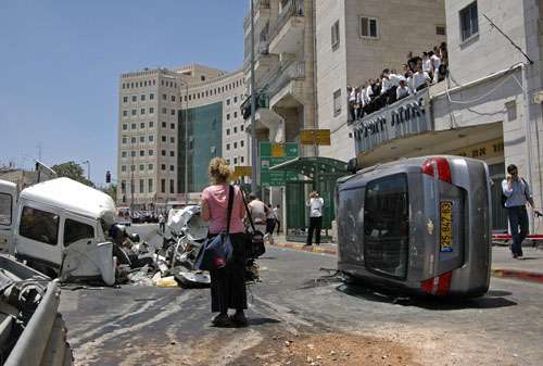 共有五六輛汽車被撞扁,另有一輛被撞翻。還有一輛巴士也被推翻,另一輛巴士嚴重受損。以色列國家拯救局證實有兩人死亡,另有兩具尸體躺在地面一動不動。當地電視報告說,共有四人死亡。