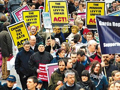 中新網2月23日電 受環球經濟衰退影響,再有歐洲國家爆發大規模示威。據香港《文匯報》報道,12萬愛爾蘭人21日走上首都都柏林街頭,抗議政府拯救經濟不力。參與示威的包括教師、公務員甚至警察,由于人數太多,主辦單位要提早出發,人龍一度填滿長達兩公里的游行路線。