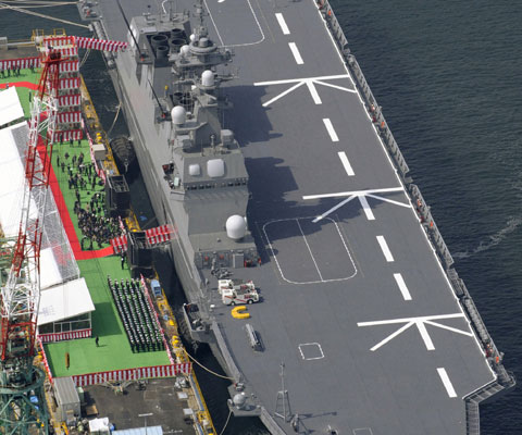 不僅如此,日本也實戰部署“準航空母艦”,加快行動步伐。航母被分類為“攻擊武器”,因此,目前憲法規定不能擁有航母的日本18日將可搭載直升機的驅逐艦“日向”號(1.39萬噸級)進行了實戰部署。“日向”號艦長197米,可以搭載11架直升機。