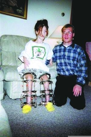 在這幸福的背后是蒂凡尼經(jīng)受的拉骨增高手術(shù)帶來的痛苦。“醫(yī)生敲斷我的腿骨,在斷裂的骨骼里植入一個裝置,這種裝置能夠?qū)⒐穷^拉長。”蒂凡尼的脛骨、腿骨和臂骨共接受了12次手術(shù),最后身高增加了大約35厘米,達到1.47米。