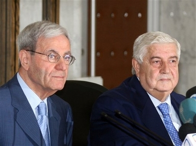 敘外長(zhǎng)穆阿利姆(右)和黎外長(zhǎng)薩盧赫
