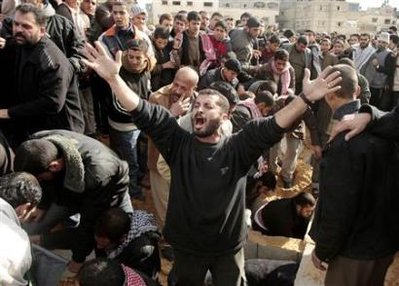 以色列空軍一日襲擊加沙,在哈馬斯第三號領導人拉揚(Nizar Rayan)家門口丟下一噸重的炸彈,拉揚及他的孩子與太太等共10余名家屬,當場死亡。