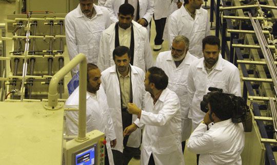 中新網(wǎng)4月10日電 綜合媒體報道,伊朗總統(tǒng)艾哈邁迪-內(nèi)賈德9日在伊朗中部城市伊斯法罕附近出席伊朗首座核燃料工廠落成儀式。