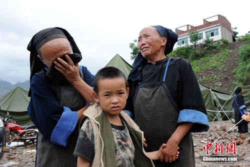 28日貴州省關(guān)嶺縣崗烏鎮(zhèn)大寨村因連日暴雨引發(fā)的山體滑坡,使這個(gè)布依族聚集的村寨99人埋在泥石之下。盧正安因當(dāng)時(shí)在院子里而躲過(guò)一劫,但他放學(xué)回家的孫子卻生生埋在了家里。在跑出來(lái)一天多的時(shí)間里,盧老漢都沒醒過(guò)神,甚至忘了找電話通知在外打工的兒子媳婦。這位黑衣白發(fā)的老漢愣愣的看著已尋不著蹤影的家,嘴里反復(fù)叨念著“可能是救不出來(lái)了”這句話,可眼神里卻又含著一分期待。